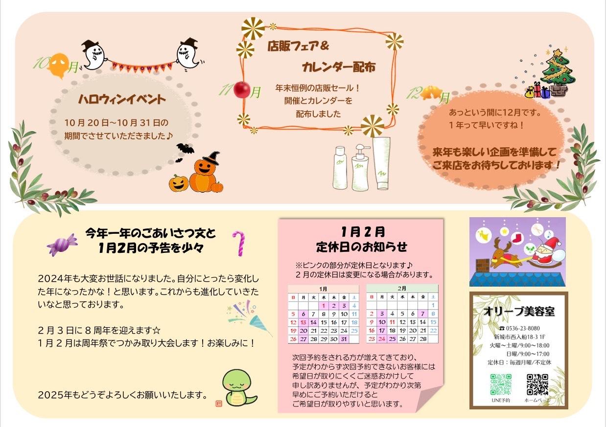 こうやって1年を振り返ってみる事今までなかったなと…思いながらこのニュースレターを作成しました。これを元に来年1月の予定も立てられるかな⁉︎と…(^^;;