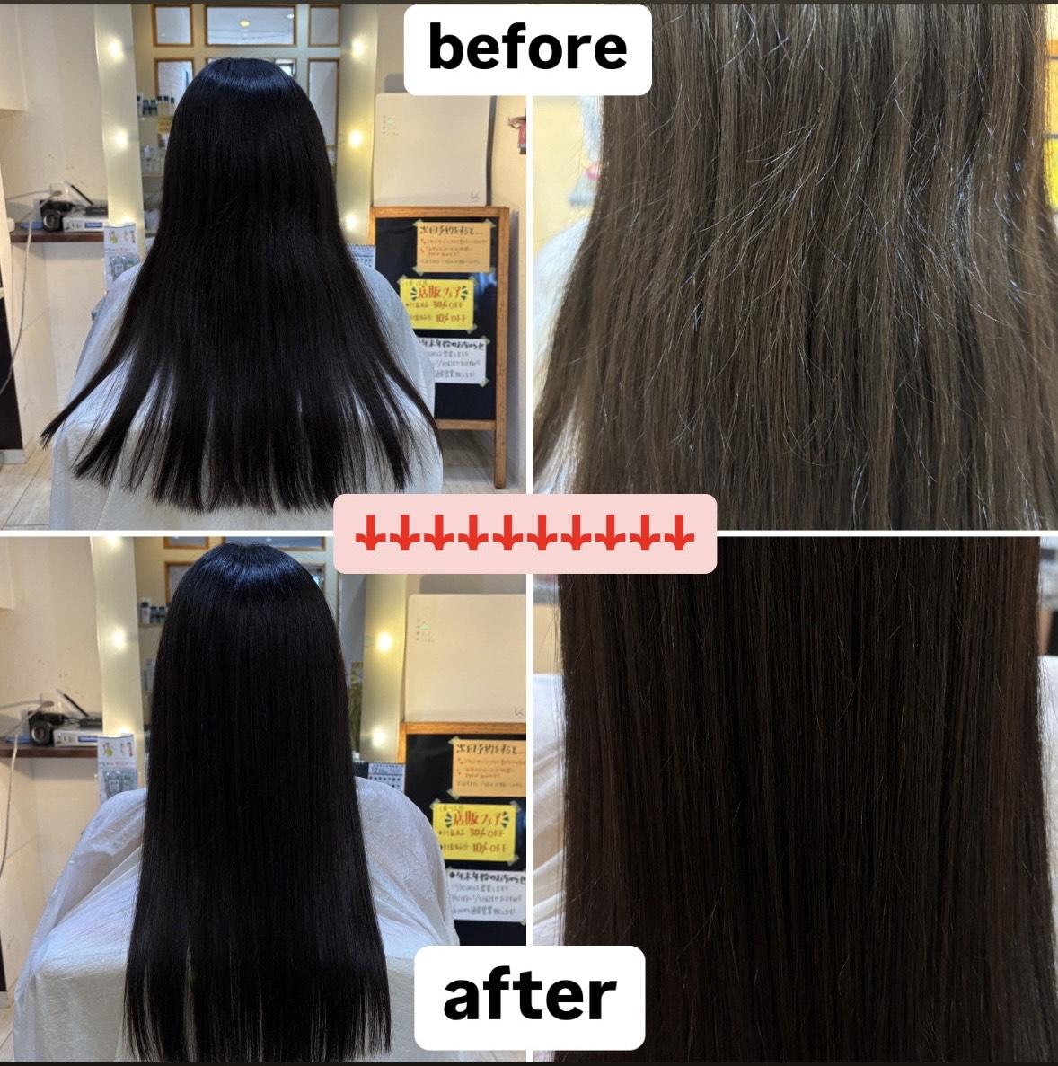 もちろん1回の施術でも効果がでますが、1ヶ月に1度のペースでトリートメントを3回続けていただくと毛髪強度のUPになります。さらに、6回続けると持ちの期間が長くなります。効果を実感いただけます☆