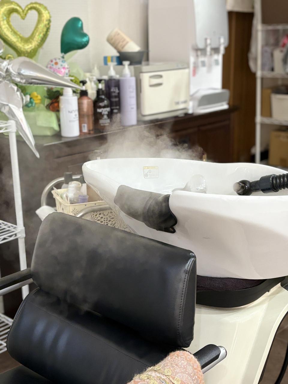 そして、シャンプー時はミストを焚きながらシャンプーをするので頭が寒くならず、頭皮・髪をしっかり保湿しながらリラクゼーション効果を感じられます♪